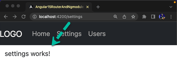 In fact, the "Settings" page still works as before so, when we visit the http://localhost:4200/settings url, the default component is still loaded: