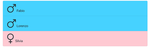 ngClass: dynamic CSS iconsOur goal is now display a different font-awesome icon to represent the user's gender, close to its name.